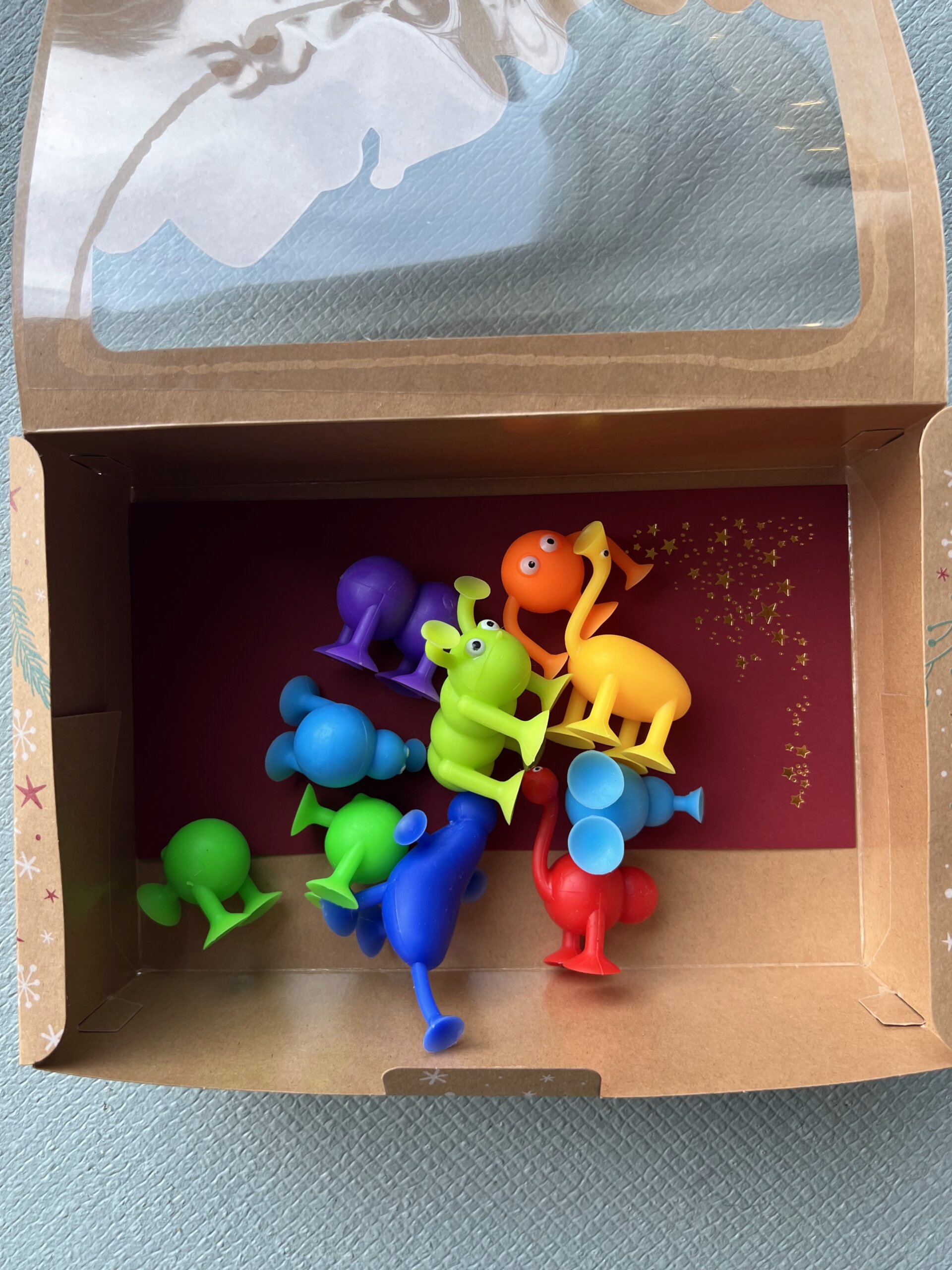 | Weihnachtsboxen | Weihnachtsbox Handpuppe Emma, Weihnachtsbox Kuscheltier Emma, Weihnachtsbox Saugnapftiere, Weihnachtsbox Moosgummi Badesticker |